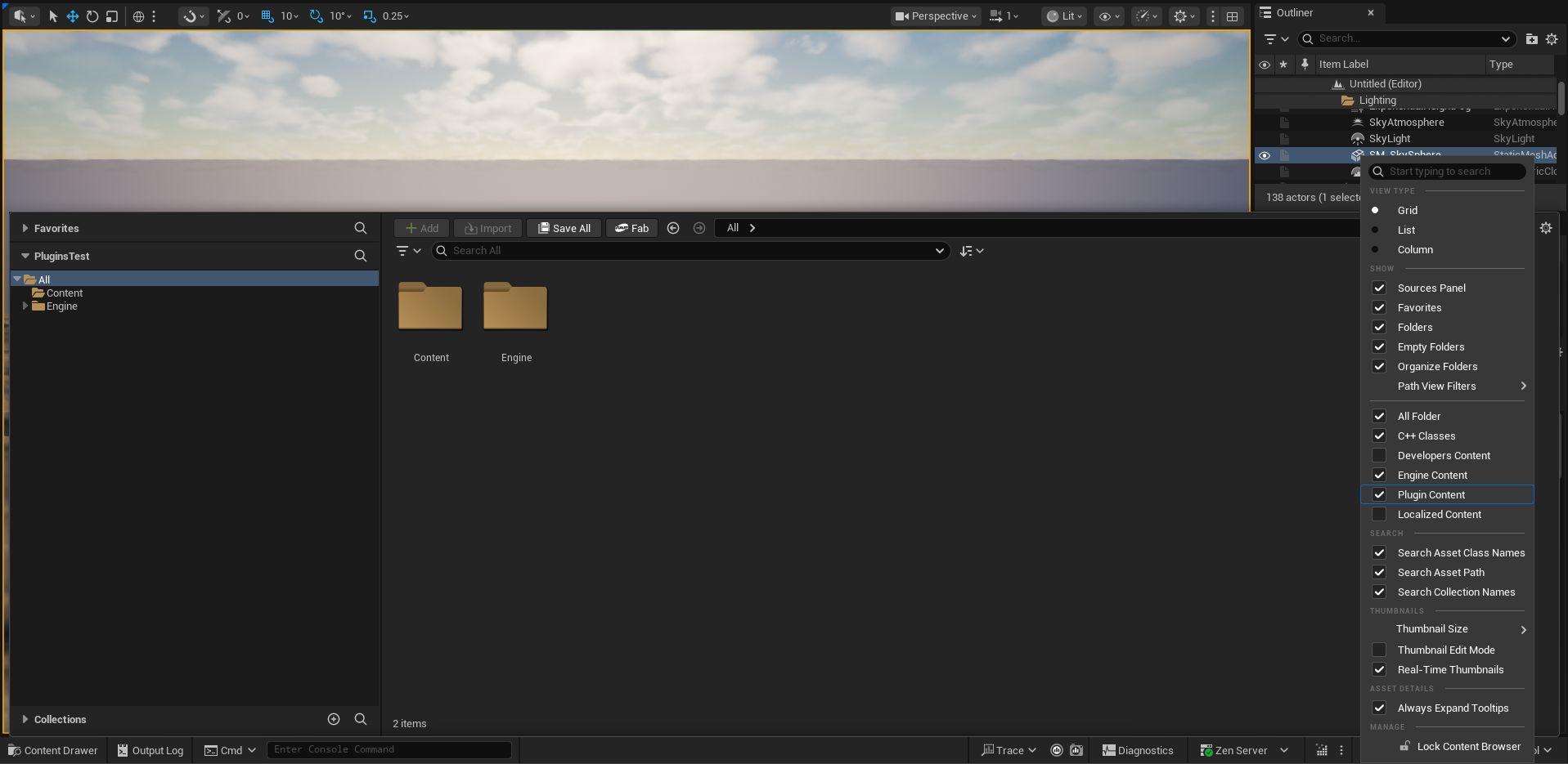 Content Browser settingsand enableEngine ContentandPlugin Contentproperties